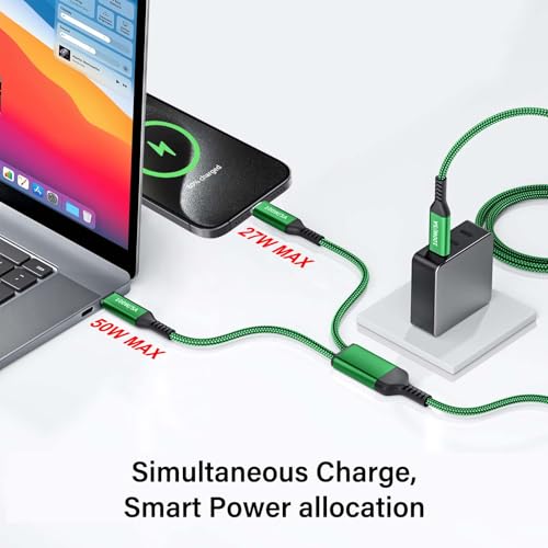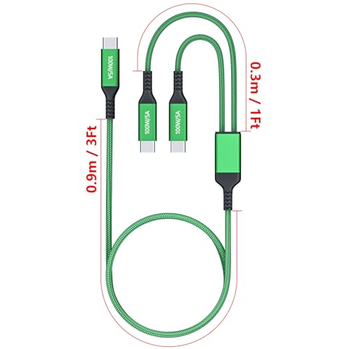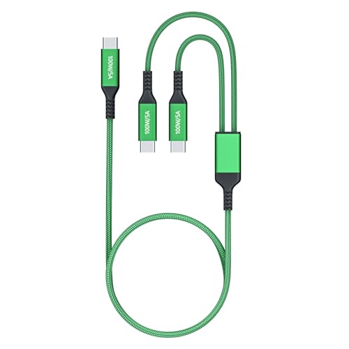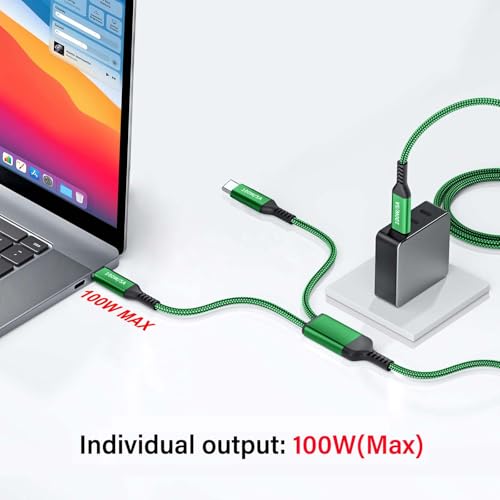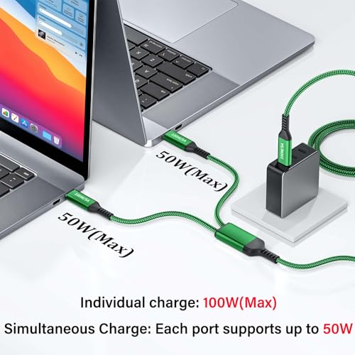100W 2 in 1 Dual USB-C Super Fast Charging Cable 4FT Green