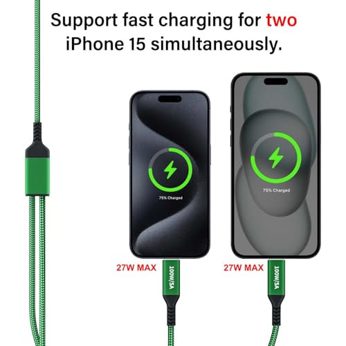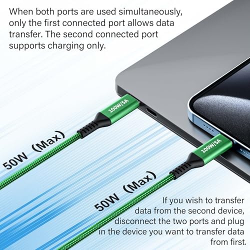 2.[100W dual-port charging cable ] This dual-port charge cable offers two ports, allowing for two devices to be charged simultaneously. When used individually, each port supports high-speed charging up to 100W. However, when both ports are used simultaneously, each port supports charging up to 50W