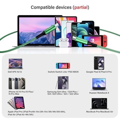 Compatible Devices: USB C to C Cable Compatible with all USB-C devices including phones, tablets, and laptops. Compatible with iPhone 15/15 Plus/15 Pro/15 Pro Max, Samsung Galaxy S24 Ultra/S24+/S24 /S23 Ultra/S23+/S23/S22 Ultra/S22+/S22/S21 Ultra/S21+/S21/S20/ S20+/S20 Ultra/Note 20, MacBook Air/Pro, Pixel series, iPad Mini 6, iPad Pro, iPad Air, Tab S9, Steam Deck, Switch, Sony PS5, GoPro, Camera, Laptop and all devices with USB-C port