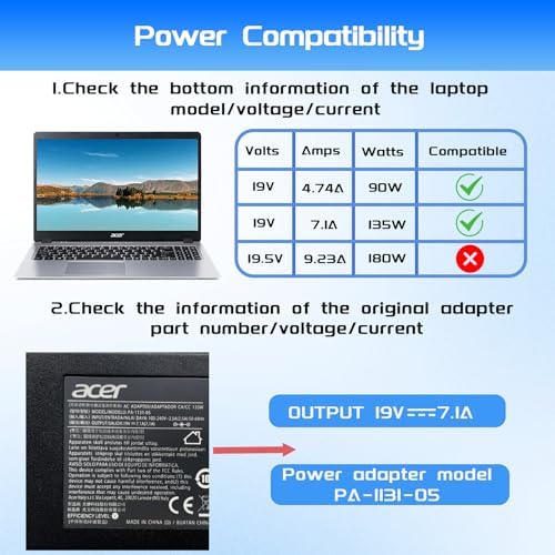 For Acer Nitro 5 7 AN515-31 AN515-41 AN515-42 AN515-43 AN515-51 AN515-52 AN515-52-55LE AN515-52-59P8 AN515-52-577H AN515-52-51NC AN515-52-78PM AN515-52-726G AN515-52-53RU AN515-52-74Z2 AN515-52-710Q AN515-52-562T AN515-52-55K1 AN515-52-73QL AN515-52-55NU AN515-53 AN515-54 AN515-55-52KW AN515-55-53AG AN515-56 AN515-56A AN515-57-584Y AN517-51 AN515-44-R99Q AN715-51 N18C3 N18C4 AN515-51-55WL AN515-51-53W5 AN515-53-55G9 AN515-55-53E5 AN515-57-79TD AN515-58-71MH AN515-58-72MJ AN515-58-5046 AN515-58-5299 AN515-58-57Y8 AN515-58-525P AN517-52-52T3 AN517-54 AN517-54-77KG AN517-54-74A0 AN517-54-55L4 AN517-54-582A AN517-54-59JX AN517-54-59S5 AN517-54-706P AN517-54-71CH AN517-54-71XG AN517-54-72Z3 AN517-54-74TF AN517-54-74WJ AN517-54-754L AN517-54-75TM AN517-54-794P AN517-54-79L1 AN715-51-796C N17C1 For Acer Aspire VN7-593G VN7-593G-738X VN7-593G-73KV VN7-593G-76SS VN7-593G-57NE VN7-593G-59F9 VN7-593G-73HP VN7-593G-742C VN7-593G-73E7 VN7-593G-786F VN7-593G-79L1 VN7-593G-70U4 For Acer Aspire VN7-793G VN7-793G-717L VN7-793G-71AG VN7-793G-719P VN7-793G-741P VN7-793G-709A VN7-793G-758J VN7-793G-722D VN7-793G-52XN VN7-793G-5811 VN7-793G-738J VN7-793G-79MN VN7-793G-53K5 For Acer Aspire VX5 VX5-591G-54VG VX5-591G-5652 VX5-591G-72U5 VX5-591G-76RK VX5-591G-77DE VX5-591G-75RM N16C7 For Acer Aspire 7 A715-71G A715-72G A717-72G A715-74G A715-74G-57GR A715-74G-52XP N17C2 For Acer Aspire V Nitro VN7-571G-58WW VN7-571G-50Z5 VN7-571G-56F1 VN7-571G-58SN VN7-571G-52PE For Acer Aspire V5-591G V5-591G-51W2 V5-591G-55UY V5-591G-711Z V5-591G-53QR V5-591G-75YC V5-591G-70GU V5-591G-58ZR, V5-591G-57LK For Acer Aspire VN7-592 VN7-592G-58NG VN7-592G-56WR VN7-592G-76XN VN7-592G-76W7 VN7-592G-53CM VN7-592G-5844 For Acer Aspire VN7-792 VN7-792G-75TH VN7-792G-580Q VN7-792G-50CU Part Numbers ADP-135KB T ADP-135NB B PA-1131-16 PA-1131-05