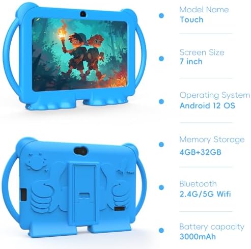 [FANTASTIC EXPERIENCE] – The kids edition tablet has a built-in high-performance quad-core processor and Android 12.0 OS, 1024×600 IPS HD display, Wifi, Bluetooth, dual camera, touch screen, 2+2GB RAM and 32GB ROM.You can expand the storage to 1TB of SD cards for storing photos, music and videos with additional micro SD card extensions. A more stable Wifi module and a durable battery give you a better experience.
