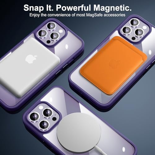 [N52 Powerfully Magnetic] With built-in powerful N52 magnet, this phone case for iPhone 14 Pro Max is compatible with most MagSafe accessories, such as wireless chargers, magnetic battery bank, magnetic wallet, and so on.Enjoy a secure, stable connection. (Note: When you use the charger, please make sure the center of the iPhone is aligned with the center of the charger, otherwise it will not charge.)