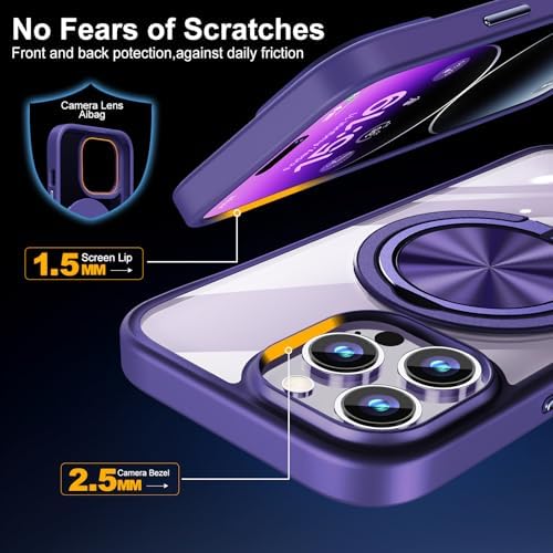 [Drop Protection & Elevated Lens Protection] Rest easy, your phone is protected by the best! The iPhone 14 Pro Max case guarantees phone safety through multiple cushioning structures. The Thermoplastic Polyurethane (TPU) frame adopts an airbag design, which can effectively disperse the vibration caused by accidental impact. A 2.5mm raised bezel above the camera opening protects the lens from scratches, and a 1.5mm bezel above the screen prevents iPhone screen damage.
