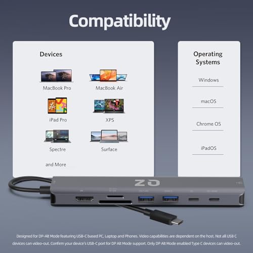 Compatible with DP-Alt Mode featuring USB-C based PC, Laptop and Phones. Video capabilities are dependent on the host. Not all USB C devices can video-out. Confirm your device’s USB-C port for DP Alt Mode. Only DP Alt Mode enabled Type C devices can video-out.