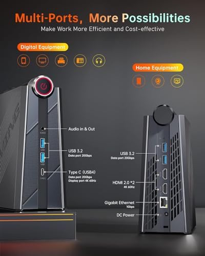 【Stable Connection and Wireless Convenience】Stay connected with the latest WiFi 6 technology, offering speeds up to 9.6Gbps. Take your mini computer anywhere wirelessly with the built-in WiFi 6. The RJ45 interface supports 1000 Mbps for efficient transmission and download speeds. Bluetooth 5.2 ensures quick recognition of your accessories and provides a stable and secure wireless connection for a clutter-free desktop experience