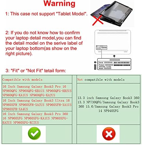 Warning: NOT compatible with 13.3 inch Samsung Galaxy Book3 360 13.3 NP730QFG Laptop and NOT compatible with 15.6 inch Samsung Galaxy Book3 360 15.6 laptop and NOT compatible with 14 inch Samsung Galaxy Book3 Pro 14 NP940XFG laptop {{Warning:Most of returned because of choosing wrong model,please confrim your laptop model}}.