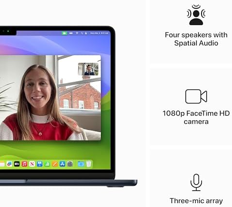 MacBook Air 13″. Lean. Mean. M3 machine. The M3 chip brings even greater capabilities to the superportable 13-inch MacBook Air. With up to 18 hours of battery life, you can take it anywhere and blaze through work and play. MEAN. M3 MACHINE–The blazing-fast MacBook Air with the M3 chip is a superportable laptop that sails through work and play. PORTABLE DESIGN–Lightweight and under half an inch thin, so you can take MacBook Air anywhere you go. GET MORE DONE FASTER–The powerful 8-core CPU and up to 10-core GPU of the Apple M3 chip keep things running smoothly. UP TO 18 HOURS OF BATTERY LIFE–Amazing, all-day battery life so you can leave the power adapter at home. A BRILLIANT DISPLAY–The 13.6-inch Liquid Retina display supports one billion colors. LOOK SHARP, SOUND GREAT–Everything looks and sounds amazing with a 1080p FaceTime HD camera, three mics, and four speakers with Spatial Audio. APPS FLY WITH APPLE SILICON–All your favorites, from Microsoft 365 to Adobe Creative Cloud, run lightning fast in macOS. GET CONNECTED–MacBook Air features two Thunderbolt ports, a headphone jack, Wi-Fi 6E, Bluetooth 5.3, and a MagSafe charging port. And connect up to two external displays with the laptop lid closed. IF YOU LOVE IPHONE, YOU’LL LOVE MAC–MacBook Air works like magic with your other Apple devices. Start an email on your iPhone and finish it on your Mac. Send text messages from your Mac. And much more. Legal Configurable options are available. Battery life varies by use and configuration. The display on the 13-inch MacBook Air has rounded corners at the top. When measured as a standard rectangular shape, the screen is 13.6 inches diagonally (actual viewable area is less). Apps are available on the App Store. Wi-Fi 6E available in countries and regions where supported.