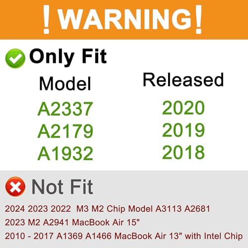 【Heat Dissipation】This slim clear hard case adds no size to your 13 inches MacBook Air, won’t restrict the MacBook air 13.3 inch 2020/2019/2018 a2337/a2179/a1932 from fully opening; The precise cutouts make cables or adapter fully pushed in and prevent from overheating.