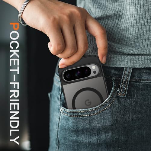 【Compatible with MagSafe Accessories】 This Pixel 9 Pro XL Case, with a built-in magnetic ring that aligns perfectly with MagSafe chargers and other Qi-certified chargers, offers a strong attach experience and faster wireless charging. This Google Pixel 9 Pro XL Case can be firmly attached to all MagSafe accessories like MagSafe charger, wallet, battery pack, car mount. However, it can’t stick to metal surfaces like fridges, steel, etc.