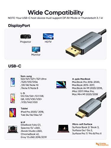 【What You Get】CableCreation 6feet USB C to DisplayPort cable, We provide 24 months worry-free warranty, friendly customer service and lifetime technical support. If you have any question, please feel free to contact us.