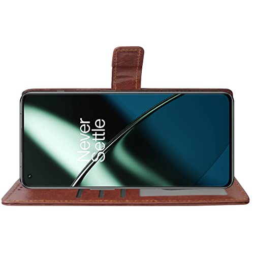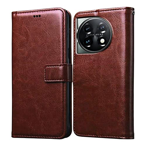 Casotec Flip Cover for OnePlus 11 5G | Premium Leather Finish | Inbuilt Pockets & Stand | Flip Case for OnePlus 11 5G (Brown)