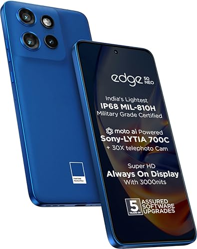 Experience the power and style of the Moto Edge 50 Neo 5G. Designed with a stunning Poinciana finish, this smartphone stands out with its vibrant, modern look. Powered by a Snapdragon processor and 5G connectivity, it delivers ultra-fast performance, seamless multitasking, and superior connectivity. Capture every moment with a 50MP main camera, enhanced by AI features for stunning photos. The 6.7″ OLED display offers crisp visuals, while 68W TurboPower charging ensures you’re always ready to go. With Dolby Atmos sound, ample storage, and a water-repellent design, the Moto Edge 50 Neo 5G is perfect for those who demand style and performance.
