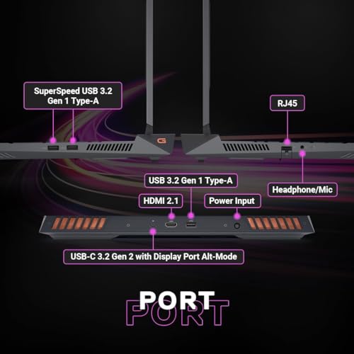 Ports: 1) HDMI 2.1, (3) SuperSpeed USB 3.2 Gen 1 Type-A, (1) USB-C 3.2 Gen 2 with Display Port Alt-Mode, (1) Headphone/Mic, (1) RJ45