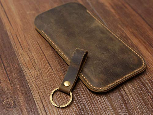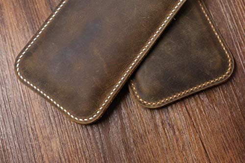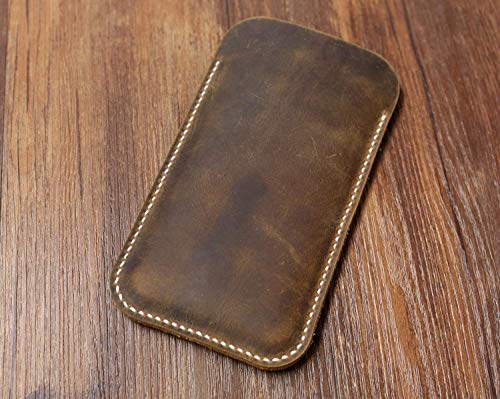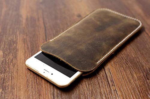 This minimal iPhone case is crafted from 1.8 mm thick distressed Brown leather and hand stitched with white or brown waxed thread to ensure durability. this case will protect your large screen phone adequately when you put it into your bag or your pocket , this great leather will age beautifully by time.