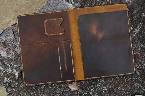 This is a A4 or legal pad sized leather portfolio, made of high quality top grain cow leather , hand cut and hand sewn ..fit for 8 1/2” x 11” size legal pad or A4 document . Use it to keep you organized at work,in a meeting or at school.