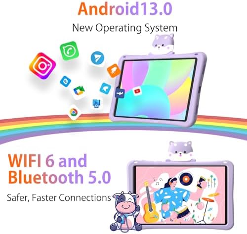 【Generous 128GB Storage Capacity+ Dual Camera】The Android 13 Tablet PC features memory expansion technology with 9GB RAM (4GB +5GB virtual memory) to make games and multitasking smooth. With 128GB of internal storage and support for storage expansion up to a massive 1TB, you’ll never run out of space for your child’s favorite content. Small tablet boasts a high pixel 13MP rear camera and an 5MP front camera, capturing breathtaking photos and delivering crystal clear video calls.
