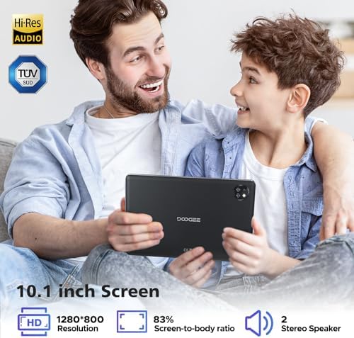 【High-Resolution Audio & Dual Camera】DOOGEE T10W Android Tablet has 2 speakers, has HI-RES Certification that can present splendid sound quality, and have a 3.5mm audio jack, ensuring you enjoy uninterrupted entertainment with stereo sound quality. The tablet equipped with a clear 5MP front camera and 8MP rear cameras, it can meet your daily needs, which will bring you excellent photos and clear video chats.