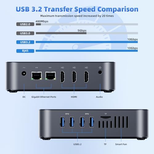 【Intel UHD Graphics Supports 4K 60Fps 3 Screens Display 】 The mini pc equipped with Intel UHD Graphics(max 750MHz), 3 HDMI ports all support 4096 x 2160@60Hz resolution, Ideal for handling complex and demanding graphics tasks such as video editing, design and rendering, and more.