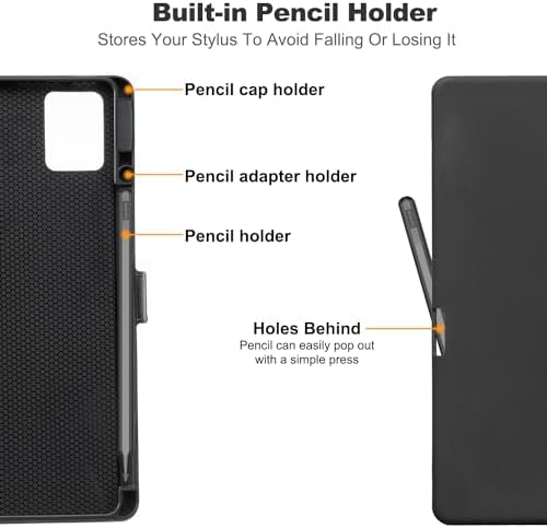 Built-In Pen Holder And Multi-Angle Standing: Built-In Pencil Holder That Holds Your Stylus Pen Firmly In Place To Avoid Falling Or Missing. Three Non-Slip Groove Designs Can Adjust The Tablet To Different Viewing Angles While Increasing The Stability When Operating The Tablet, So That The Device Does Not Slip Easily.
