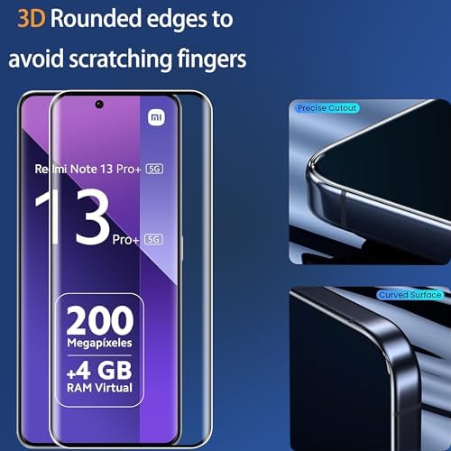 [Highly Transparent]This kind of screen protector is 99% High Definition Clarity, 99% light transmittance, keeps the brightness and colorful image quality of your Xiaomi Redmi Note 13 Pro+ 5G/Redmi Note 13 Pro Plus 5G,High-response and high transparency,reaching a 2.5D arc edge