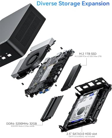 【Mini PC i9 32GB RAM &1TB SSD】KODLIX GD90 Mini Computers is equipped with 32GB RAM (2x16GB, dual-channel, expandable up to 64GB). It includes a 1TB M.2 2280 PCIe4.0 SSD (supports scalability to 2TB) and also supports an expansion for a 2.5-inch 2TB SSD. The 32GB RAM unleashes the full potential of the Intel Iris Xe graphics, providing a faster response for both gaming and design data processing. The 1TB SSD offers ample space for more files, you can easily store movies/digital camera photos.