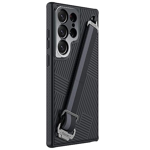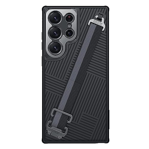 Case for Samsung Galaxy S23 Ultra (6.8″ Inch) Strap Detachable Rope for Grip & Hold 360 Protect Leisure Sports Workout Metal Casing for Camera Lens Black Color