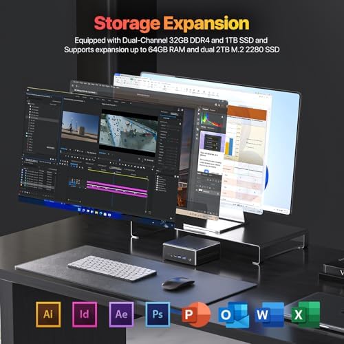 【High Capacity & Expansion Options】The mini computer is built-in 3200MHz 16GB DDR4 RAM(can be upgraded up to 64GB MAX with 2 available memory slots).It also comes with 512GB PCle 4.0 SSD, supports upgrade storage to 2TB (excluded) .It can smoothly handle multiple tasks being performed.