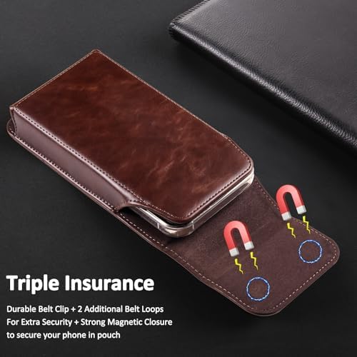 [Premium Durable PU Leather] The elegant phone holster is made of high-quality PU leather materials with metal belt clip, which not only shows a stylish and unique texture, but also protects your phone from scratches and damage.