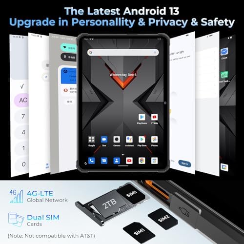 【Octa-Core Processor + 4G LTE Dual SIM】 HOTWAV R7 outdoor tablet is equipped with a Unisoc T606 Octa-core processor and a fully upgraded Android 13, which has faster and more efficient performance and can run smoothly even during multitasking. It also supports dual Nano SIM Cards or 1 Nano SIM Card + 1 SD Card.(Note: Not compatible with AT&T)