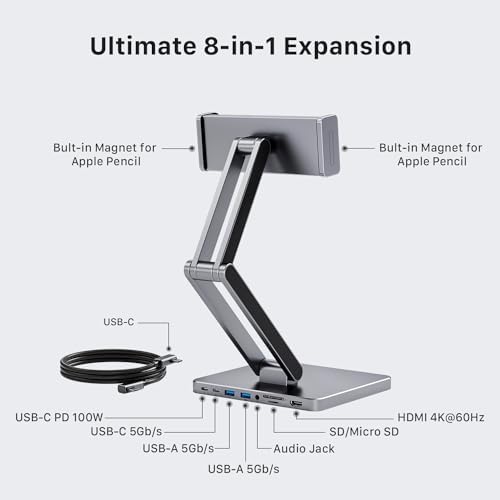 Sleek & Durable Construction: Crafted with premium aluminum, this docking station not only complements the aesthetic of your iPad Pro but also ensures longevity and heat dissipation.