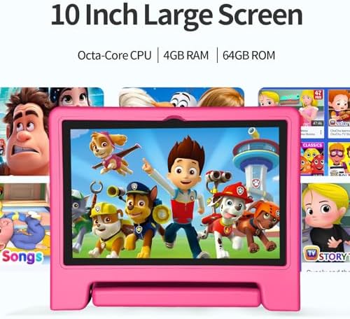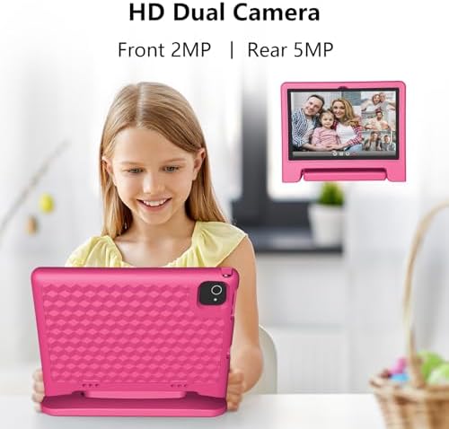 KID-PROOF CASE: Designed for kids aged 3-12, this tablet for kids comes with a kid-proof case made from soft, impact-resistant EVA material. The case features a built-in carrying handle and offers protection against drops, bumps, and scratches, making it the ideal for children tablet users.