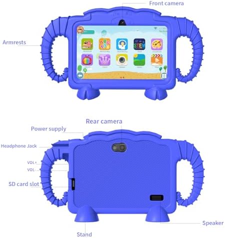 【Tablet Case】Suitable for little hands, the childproof case is specially designed for kids, Side handles for easy grabbing, the grip also acts as a cushioning effect. and bumpers on the four Cushion pads to protect the 7 inch portable kids tablet from damage.
