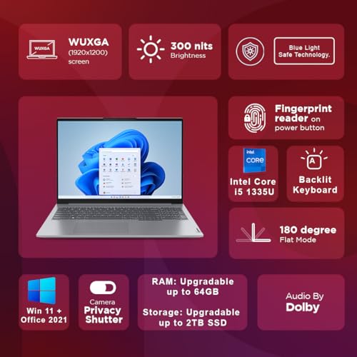 Processor: 13th Gen Intel Core i5-1335U processor | 10 Cores | 12 Threads | Speed Upto 4.6 Ghz | 12Mb Cache | Memory: 16GB DDR5 5200 MHz, dual-channel capable upgradable up to 64GB | Storage: 512GB SSD M.2 Upgradable up to 2TB
