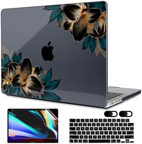 MEEgoodo Case for M3 MacBook Pro 14 inch Case 2023 2021 New A2918 A2992 A2779 A2442 M2 M1 Pro/Max with Touch ID, Hard Shell with Keyboard & Camera Cover Compatible with MacBook Pro 14″, Golden Lilies
