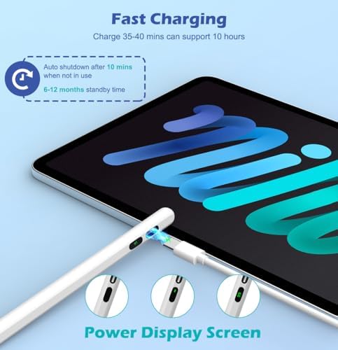 【Fast Charging and LED Power Display】: With Type-C charging port and built-in 135Ah lithium battery, the stylus pen takes only 35-40 mins to fully charge and can work continuously for 10 hours. The stylus will automatically turn off to save power after 10 minutes of inactivity. The LED power display screen provides clear reading of the specific remaining power. (Note: After turning on the pen, the digital panel shows its power level, then display “-“, press the button again to display power.)