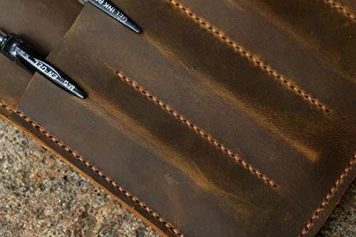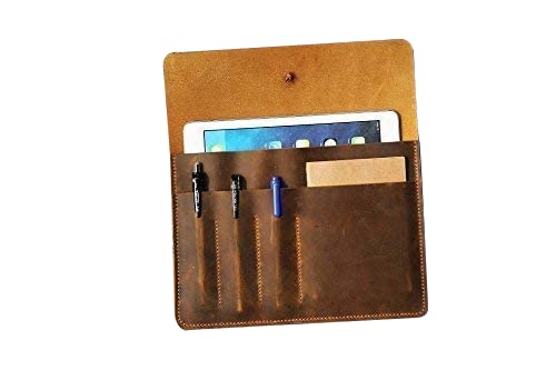 This iPad case was made of oiled cow leather ,will be aged beautifully over time .simple and practical design , there is A6 size compartment at the front of case and three pen slot ,you could put a A6 size pocket notebook and a apple pencil into the front of pocket and slot ..
