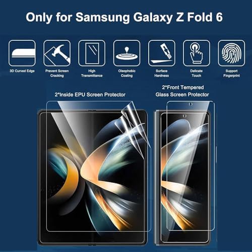 [Designed for Samsung Galaxy Z Fold 6 5G ] Specially designed for samsung galaxy Z Fold 6 5G 2024. You will get 2pcs Outer Tempered Glass screen protector + 2pcs Soft inside screen protectors.