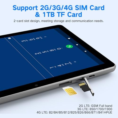 4G CELLULAR & WI-FI TABLET: This 2-in-1 tablet is the perfect combination of a mobile phone and a tablet. The tablet with a Micro SIM card slot supports 2G, 3G, and 4G networks. (2G LTE: GSM Full band; 3G LTE: 850/1700/1900; 4G LTE: B2/B4/B5/B12/B25/B26/B66/B71/B41HPUE) It features built-in phone and SMS apps, allowing you to make calls and send text messages just like a mobile phone. LECTRUS tablet also supports Bluetooth 5.0 and 2.4G & 5G Wi-Fi.