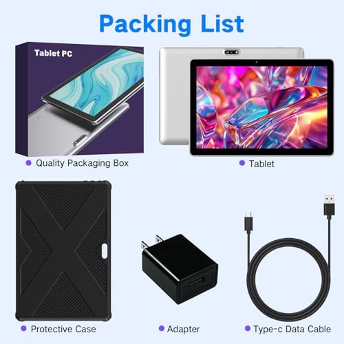 RELIABLE AFTER-SALES SERVICE: This tablet with case is a good gift for friends, and also a good gift for yourself for daily leisure. It is also a tablet for kids to learn (with parental controls function) and a convenient tablet for seniors to use. Any issues, we will reply in time and assist you to solve any issues. Package Contents: Tablet, USB-C cable, protective case, user manual.