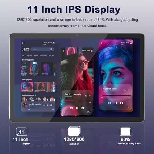 【11 inch tablet】 11″ HD touch display, 1280*800 resolution, 178 degree viewing Angle, smooth browsing on the ultra-wide display, designed to make your content lifelike, bright color screen, bring you a more realistic viewing experience, bring you a clearer and brighter picture, ensure that you are more smooth when watching movies and playing games.