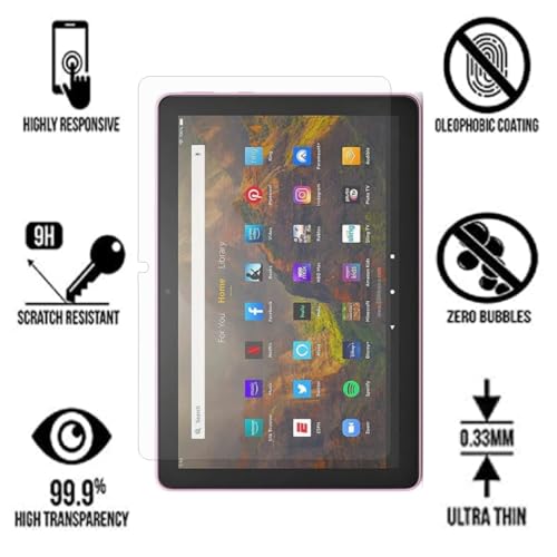 FEATURES: Tempered Glass for Amazon Fire Hd 10 2021 Screen Protector is made of Flexible Fiber which is Bendable, Scratchproof, Oleophobic & Bubblefree, has 9H Hardness, is Shatterproof made of Nano Glass Fiber Technology & also is Stylus, S Pen, Pencil Compatible