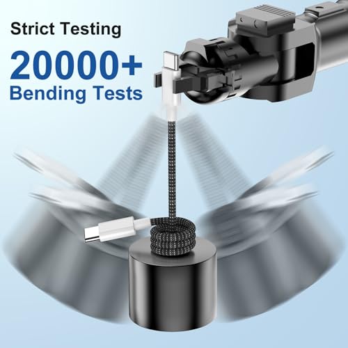 Safe and Durable: Tinned copper wire can protect your device from overheating during charging, thanks to a nylon sleeve, USB C cable 60W is durable. It can carry over 20000bends. In addition, several screens prevent shaking contact and thus extend the service life of the charging cable.