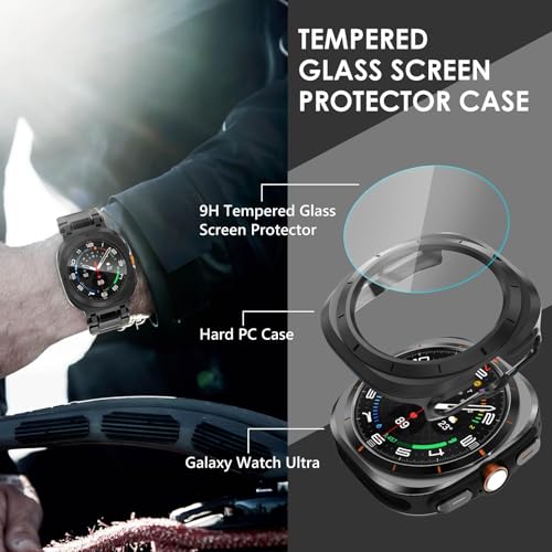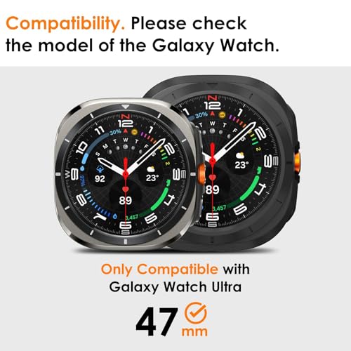 【Screen Protection】This Galaxy Watch Ultra Screen Protector PC bumper can protect your watch from dust, dirt, scratches and damages. Easy to take on and off, accurate holes access to all controls and sensors, firm and secure. The snap design on the back keep the watch from popping off